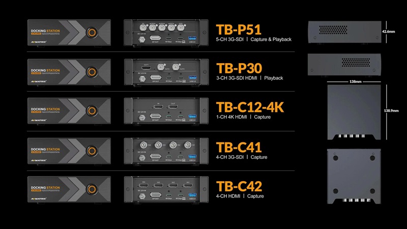 4. Docking Station TB-P30 : 2 x 3G-SDI output , 1 x HDMI 1.4 Output ( Video format up to 1080p60 )