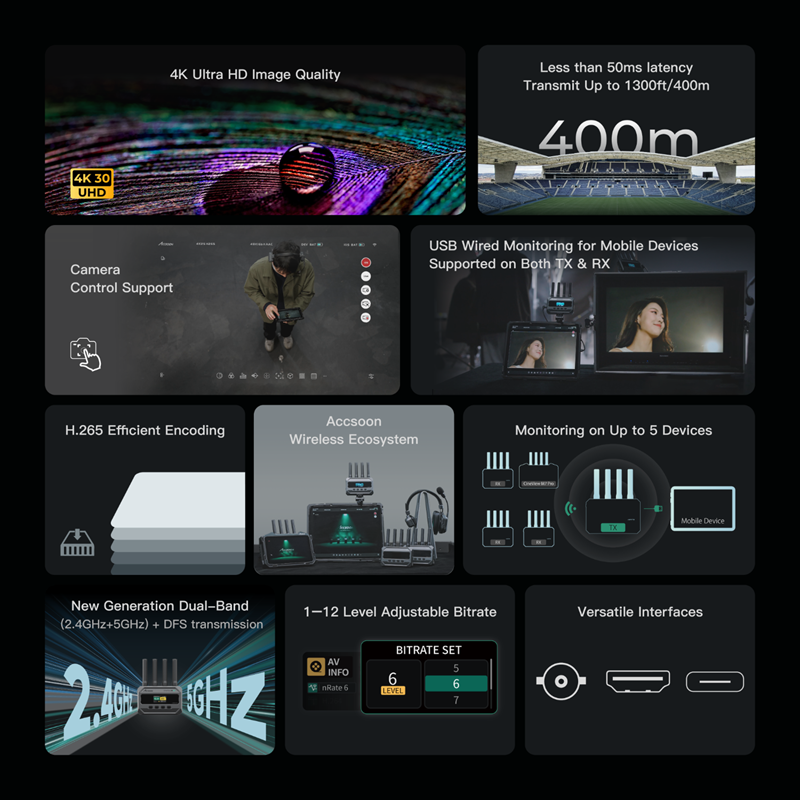 Hệ thống này cung cấp cả đầu vào và đầu ra HDMI và SDI, với bộ thu cung cấp đồng thời các đầu ra video HDMI, SDI và USB, hỗ trợ nhiều quy trình giám sát và phân phối tại hiện trường.