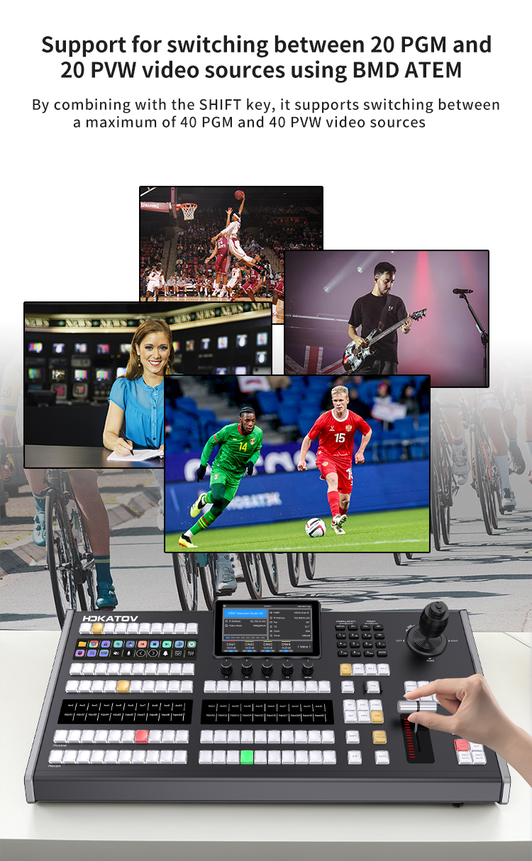 – Lý tưởng cho phát sóng thể thao, phát trực tuyến eSports, ghi âm nhà thờ và biểu diễn trên sân khấu. Bao gồm các phím tắt MACRO, FTB và điều khiển M/E cho các thao tác một chạm.